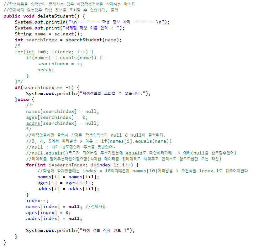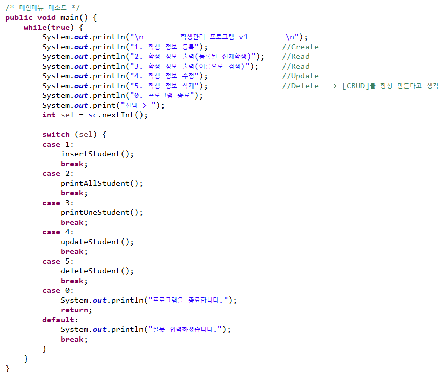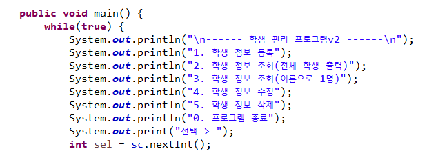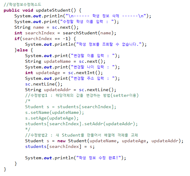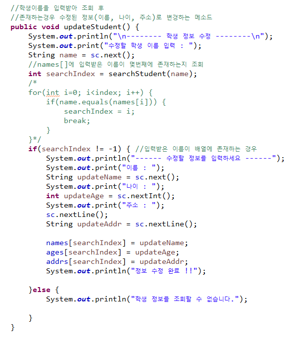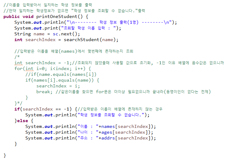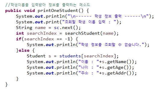 1 - 2 ) 학생관리 프로그램 v1 : 메소드를 만들어 사용