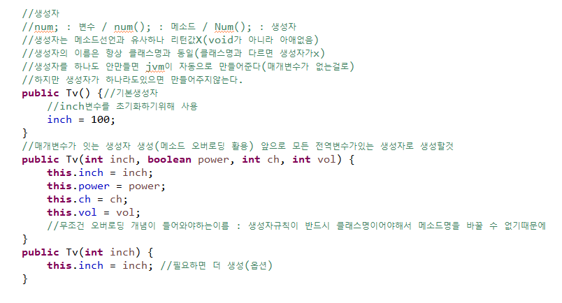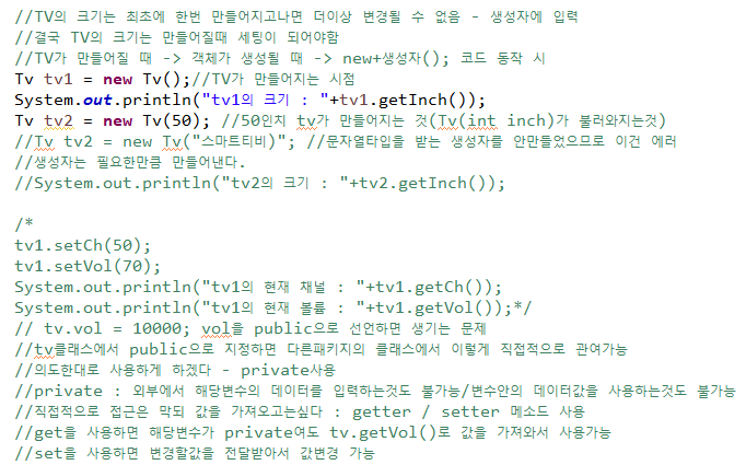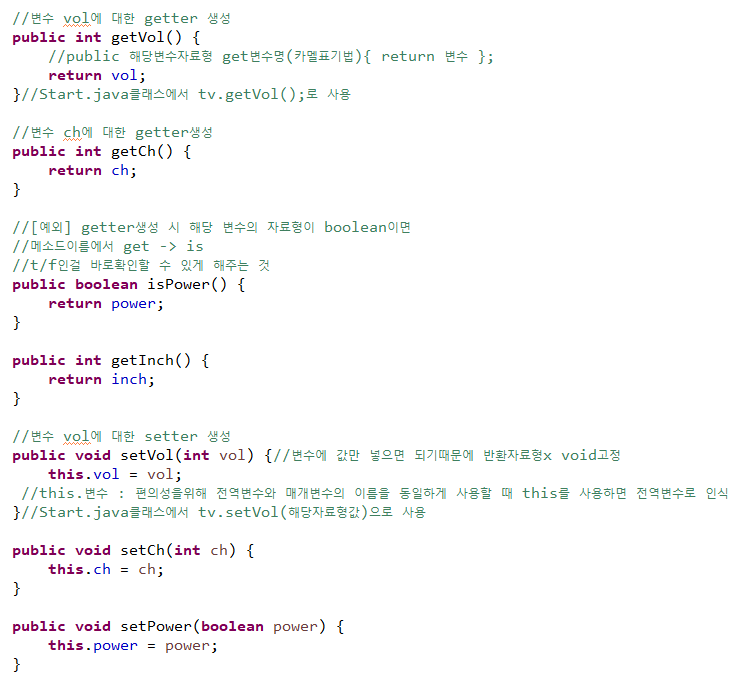 위같은 경우에서 inch변수는 변하지 않으므로 setter는 작성해주지않아도 된다.(만들어도됨, 단 규칙을지켜서)