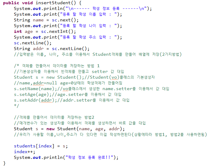 students객체를 자꾸 헷갈림! 안에 값을 넣어줘야하는데 Studnet자료형과 변수students를 계속혼동
