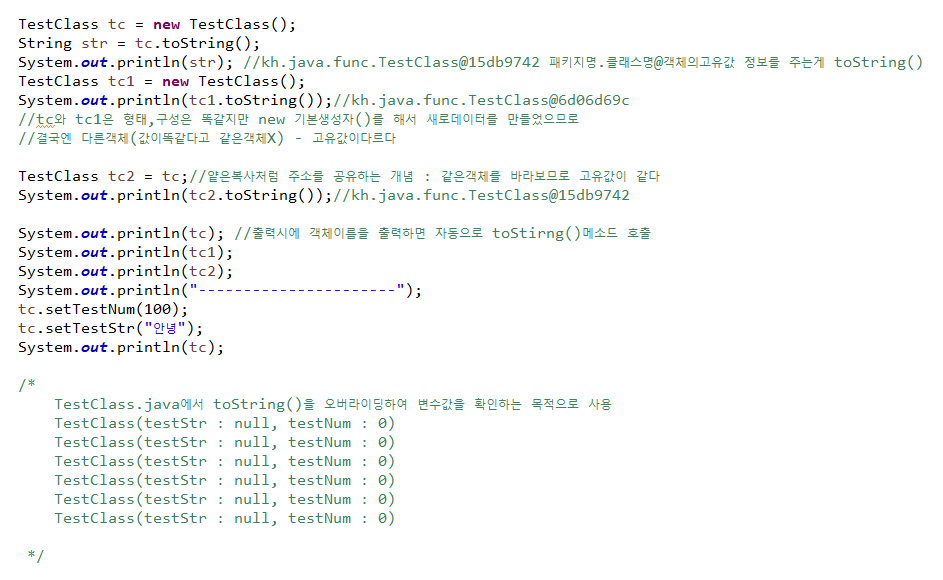 아무클래스도 종속 하지않은 TestClass에서 사용할수 있는 메소드가 존재(암묵적으로 Object를 상속하고 있기때문에)