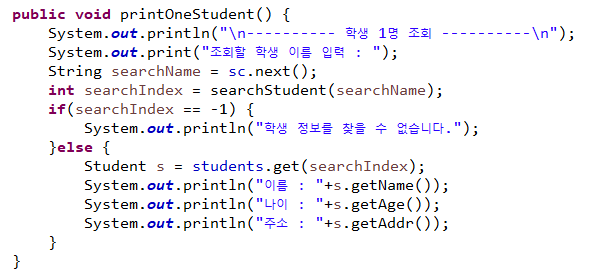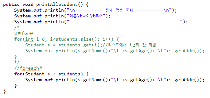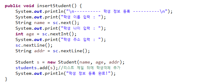 StudentMgr : 학생정보를 ArrayList에 저장하여
