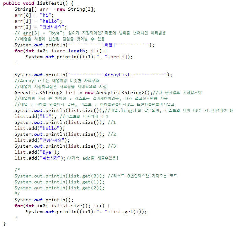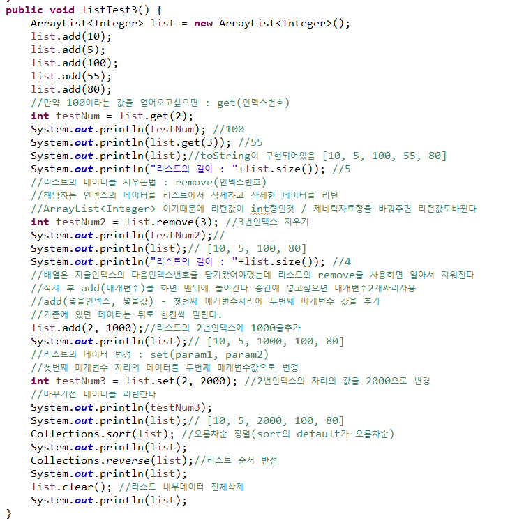 Collection의 장점 : 크기제약X / 추가,삭제 정렬이 편하다 / 여러 타입 저장가능(객체타입만)