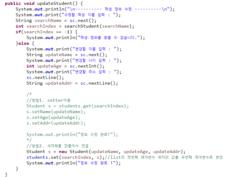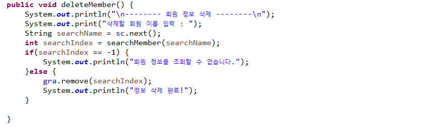 특히 삭제가 배열을 사용할 때는 나름 복잡했는데 ArrayList를 사용하니 너무 간단해져서 살짝 허무하기도하고 코드가 깔금해지는게 마음에 들었다.