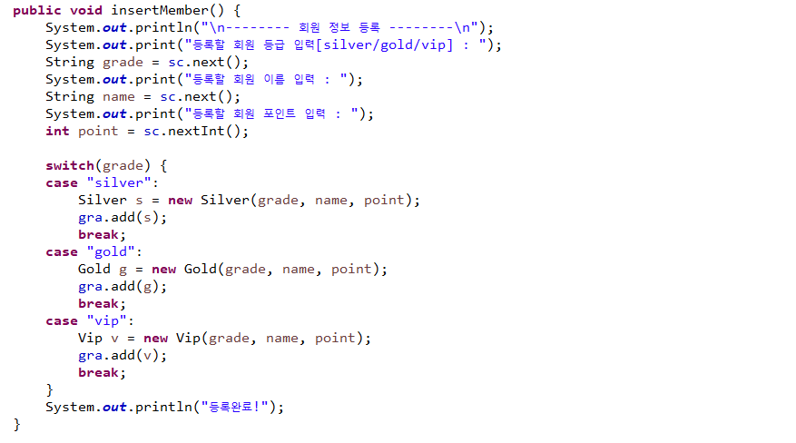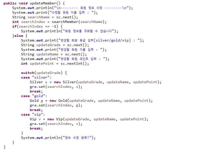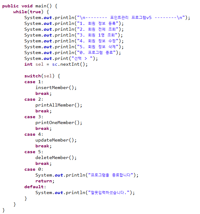 pointMgr : 회원정보를 ArrayList에 저장하여 구현하기