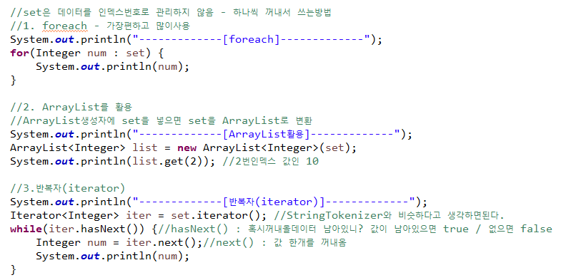 Set : 순서를 유지하지않고 저장 / 중복저장불가 / HashSet, TreeSet
