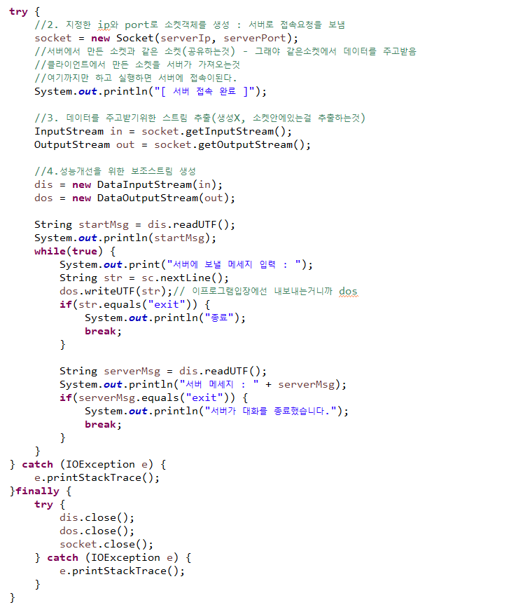 [ 최종 Server Code ] - "exit" 라는 키워드를 입력받을 때까지 채팅(서버도 클라이언트도 종료가능)