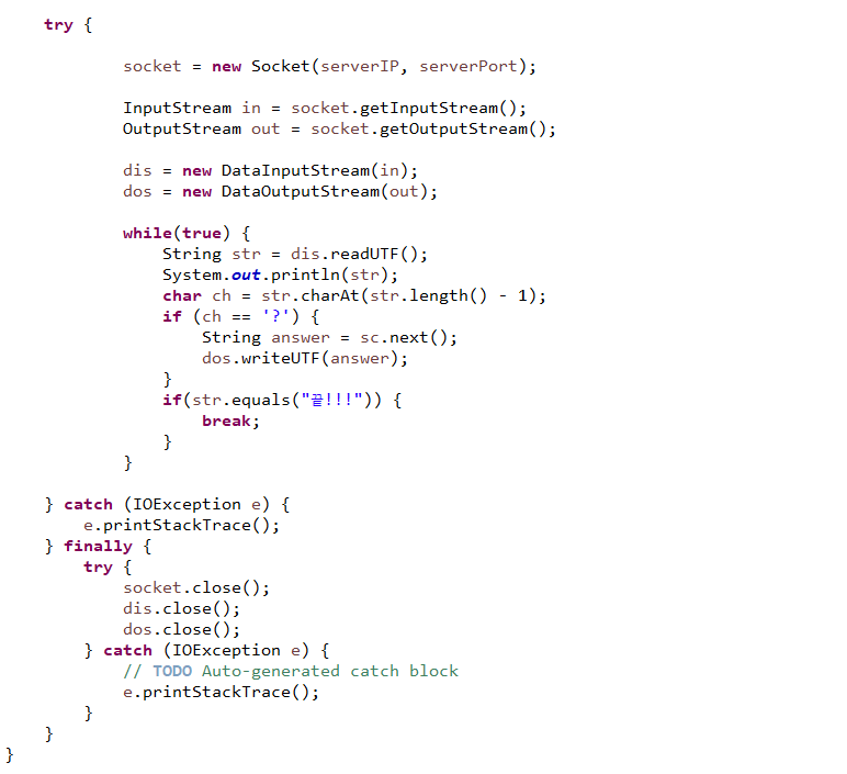 1 - 3 ) Quiz.지정된 서버에 접속해서 문제를 다풀면 끝나는 프로그램