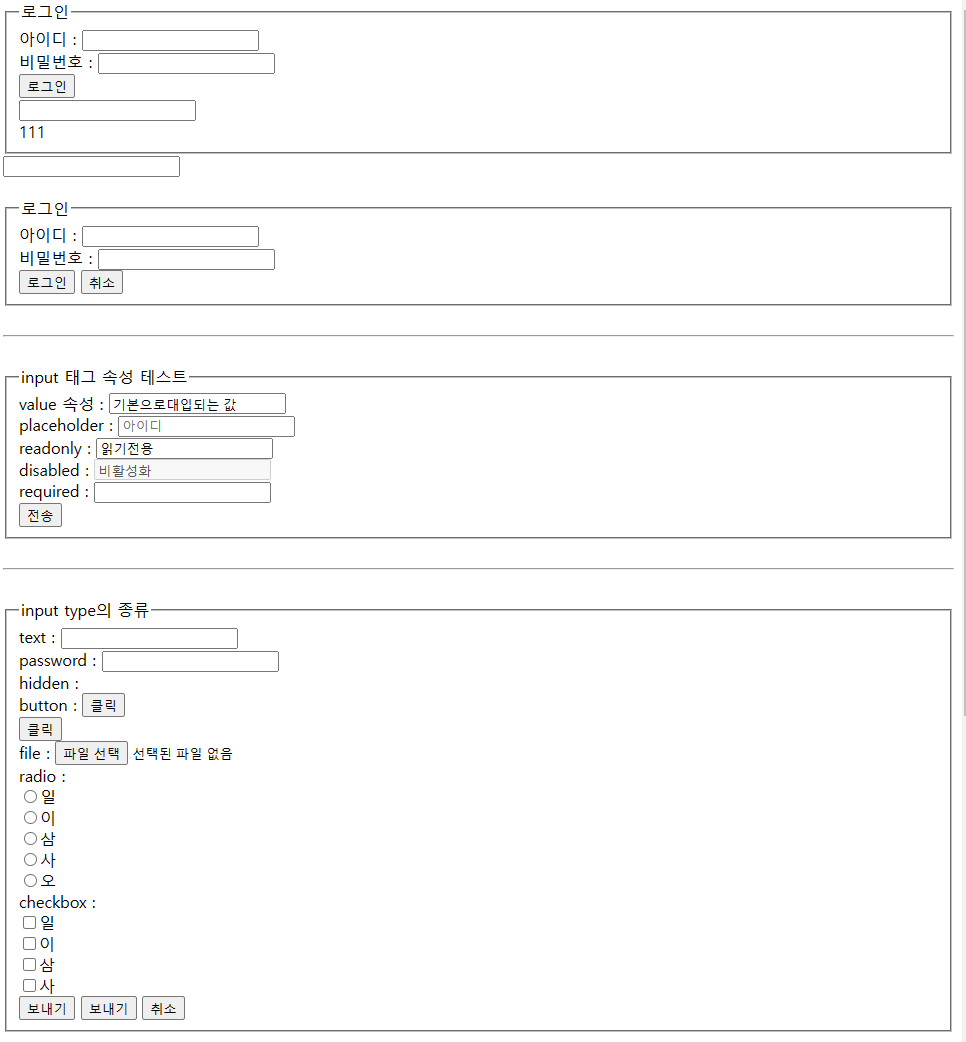 <!--폼하나에 여러개의 필드셋 사용 가능-->