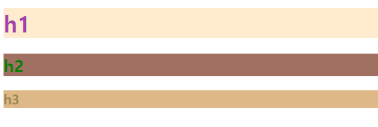 <h1 style="color:rgb(162, 62, 174);background-color: blanchedalmond;">h1</h1>