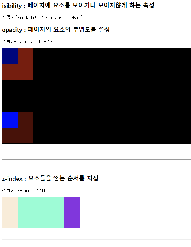 <h3>isibility : 페이지에 요소를 보이거나 보이지않게 하는 속성</h3>