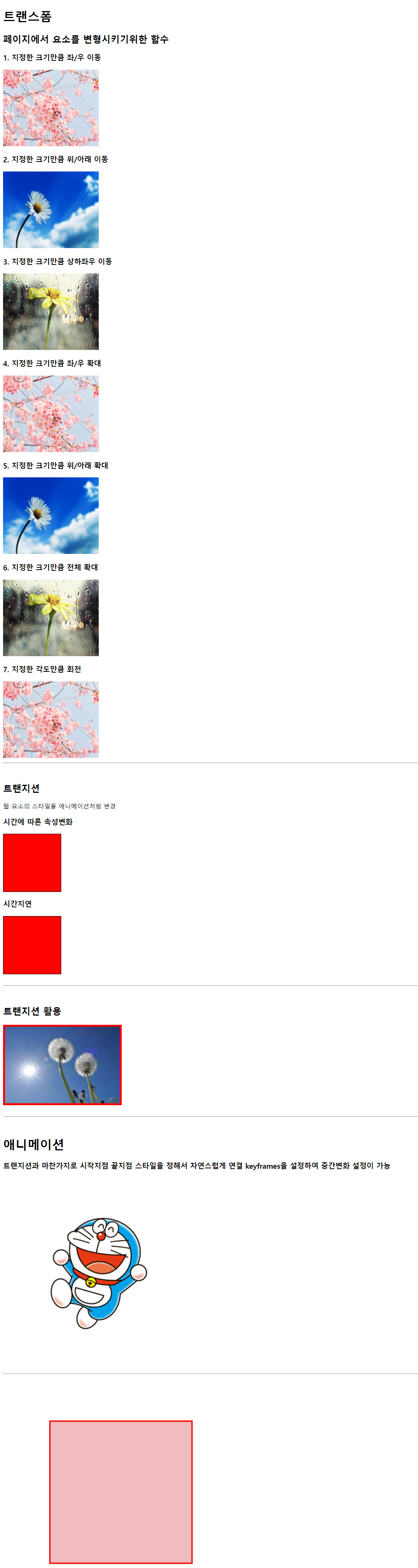 <p>웹 요소의 스타일을 애니메이션처럼 변경</p>