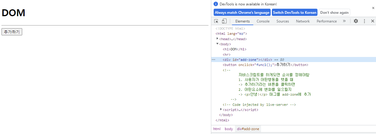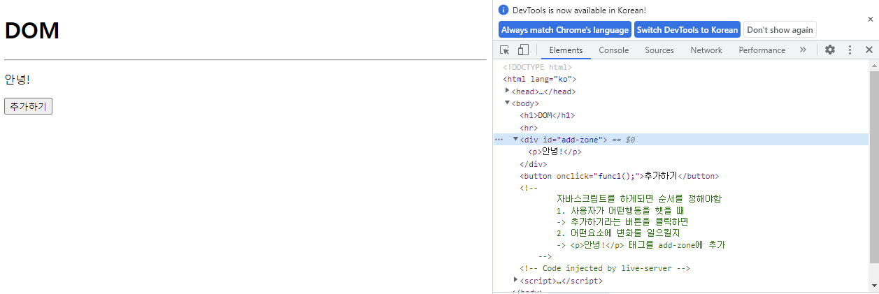 -> <p>안녕!</p> 태그를 add-zone에 추가