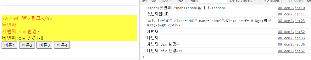 //글씨만 변경할거면 innerText 태그도 변경할거면 innerHTML사용