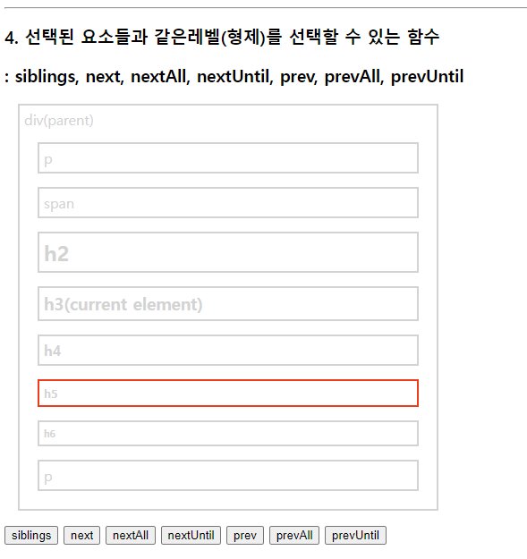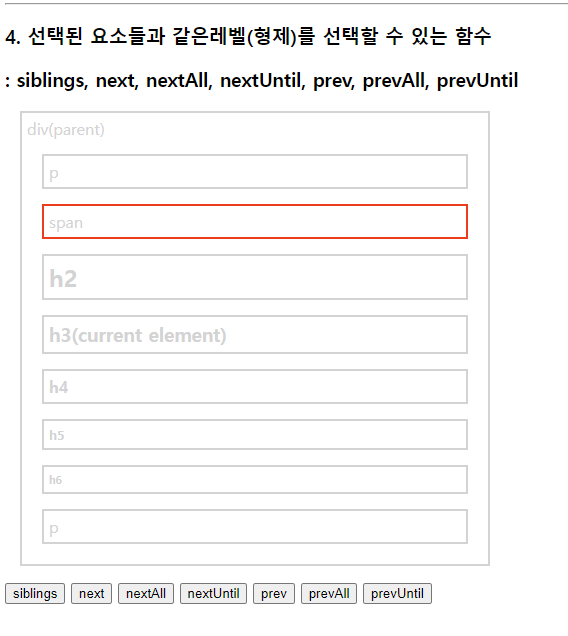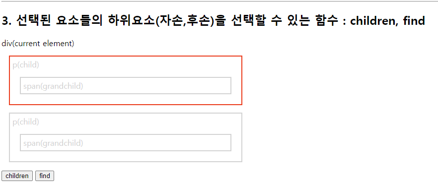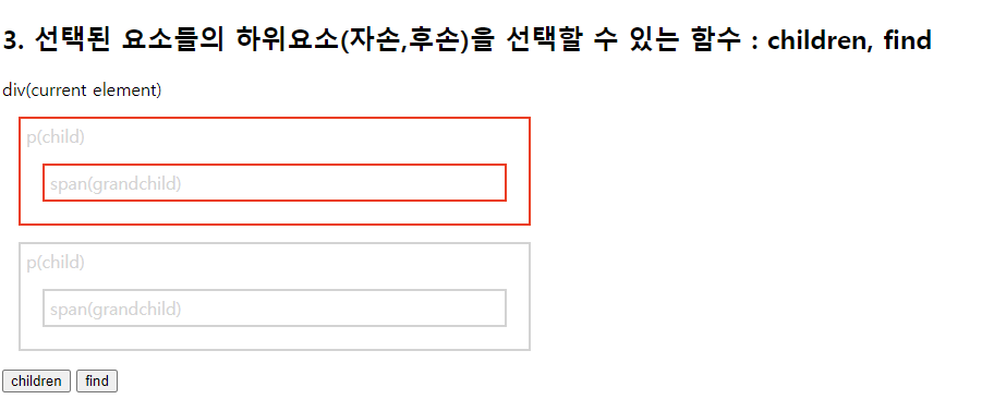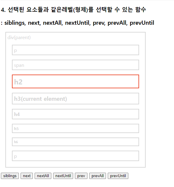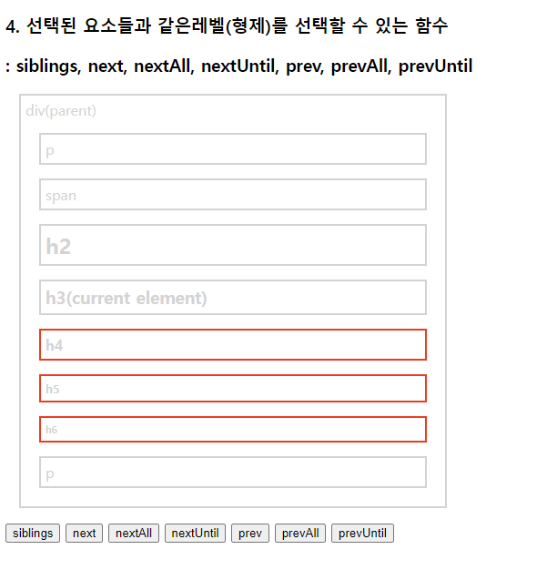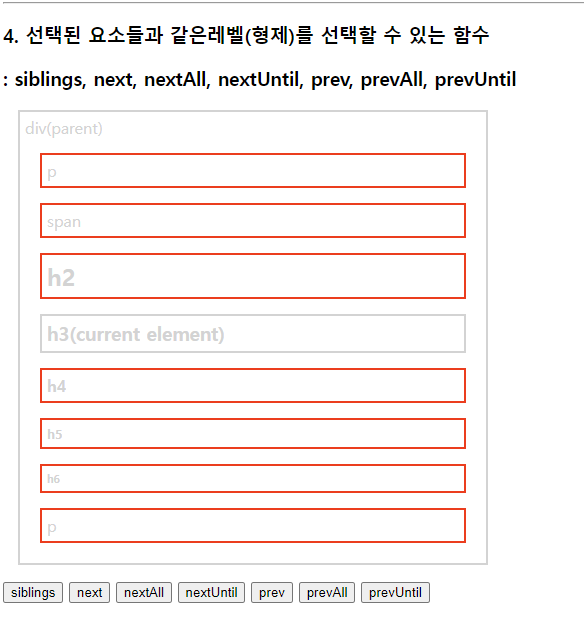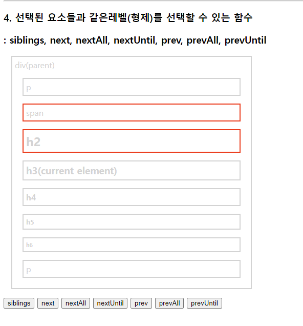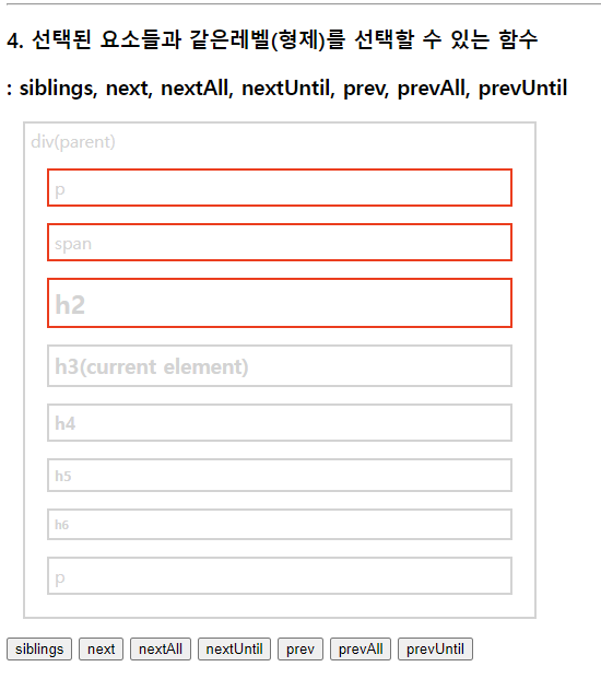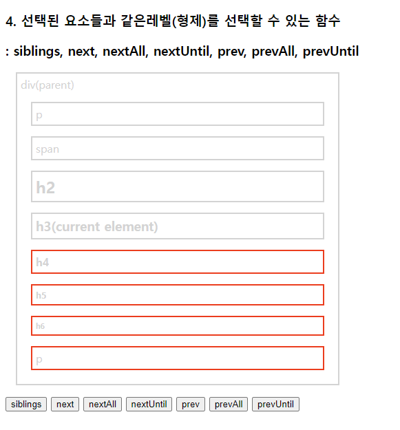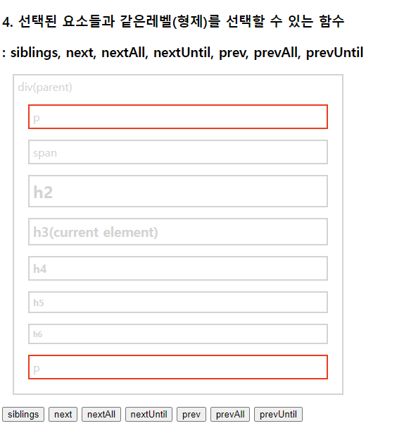 select.css("border", "2px solid red"); //현재태그(h3)부터 매개변수태그(p)까지 단,기준이되는 태그들은 빠짐