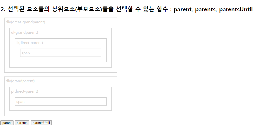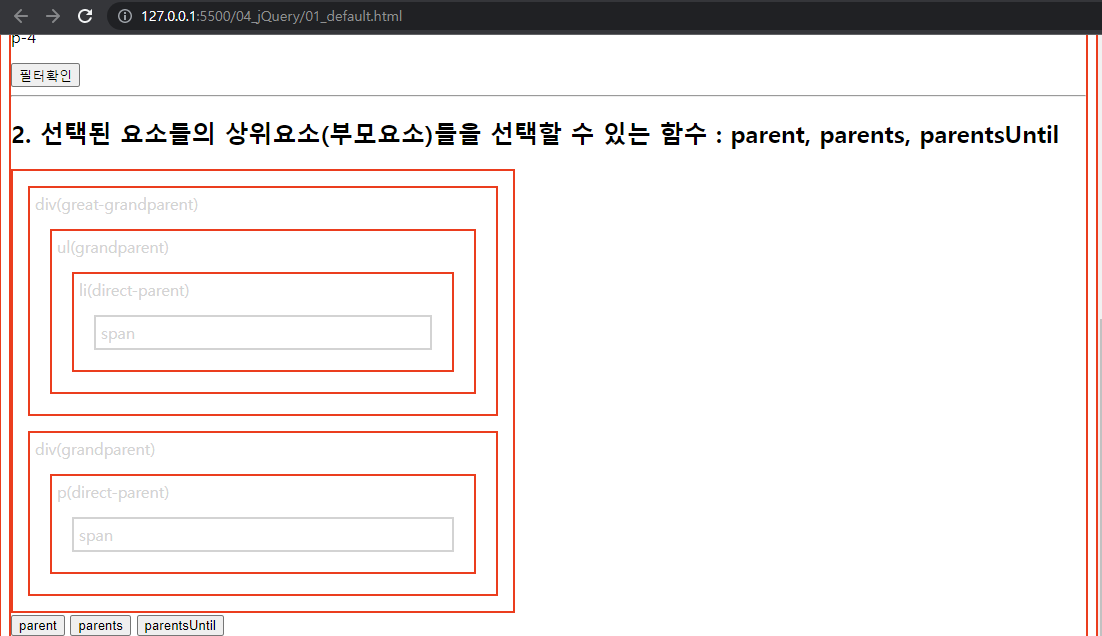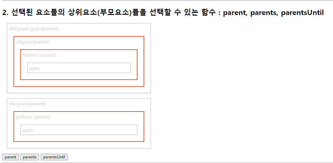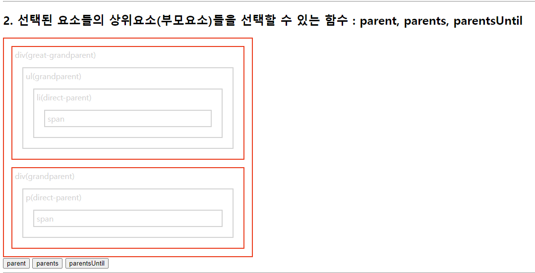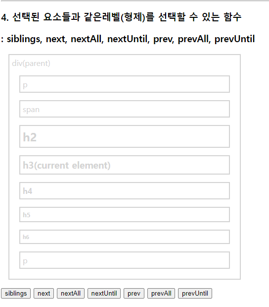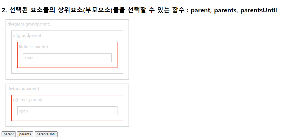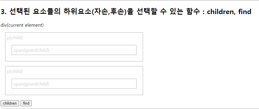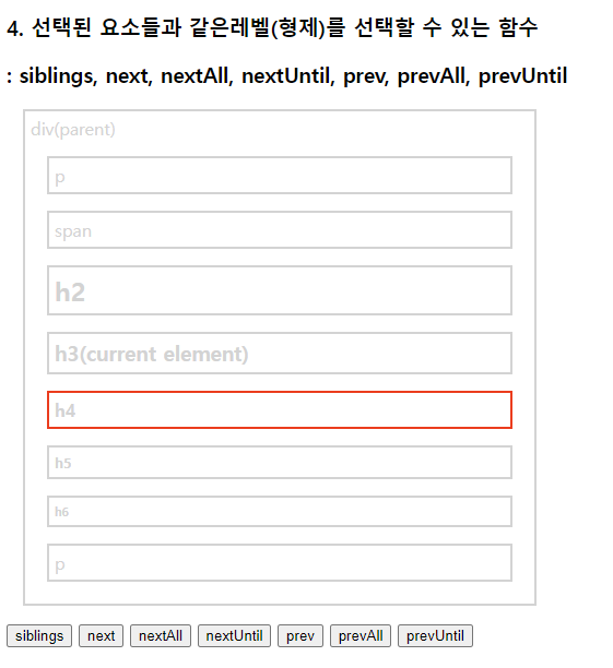 select.css("border", "2px solid red"); //현재태그(h3)부터 매개변수태그(p)까지 단,기준이되는 태그들은 빠짐