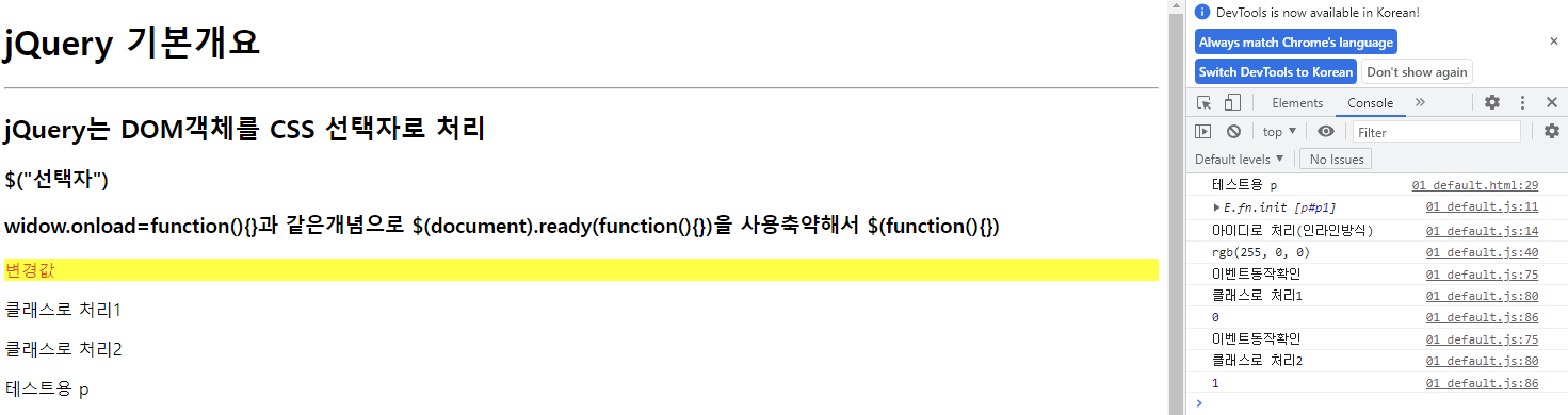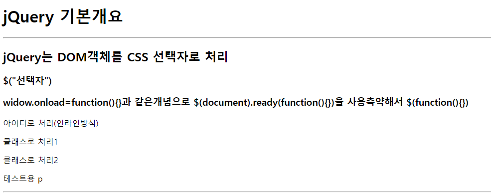 <h1>jQuery 기본개요</h1>