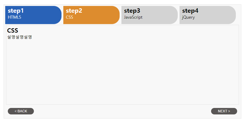 : 메뉴바를 클릭하면 이동가능(단, 바로 다음단계만 이동가능 step1에서 step3/4는 불가)