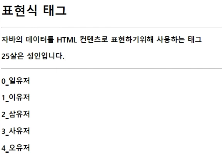 <h3>자바의 데이터를 HTML 컨텐츠로 표현하기위해 사용하는 태그</h3>