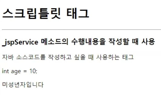 int age = 10; <!-- 아무태그도 쓰지않은 글씨로 화면에 구현 -->