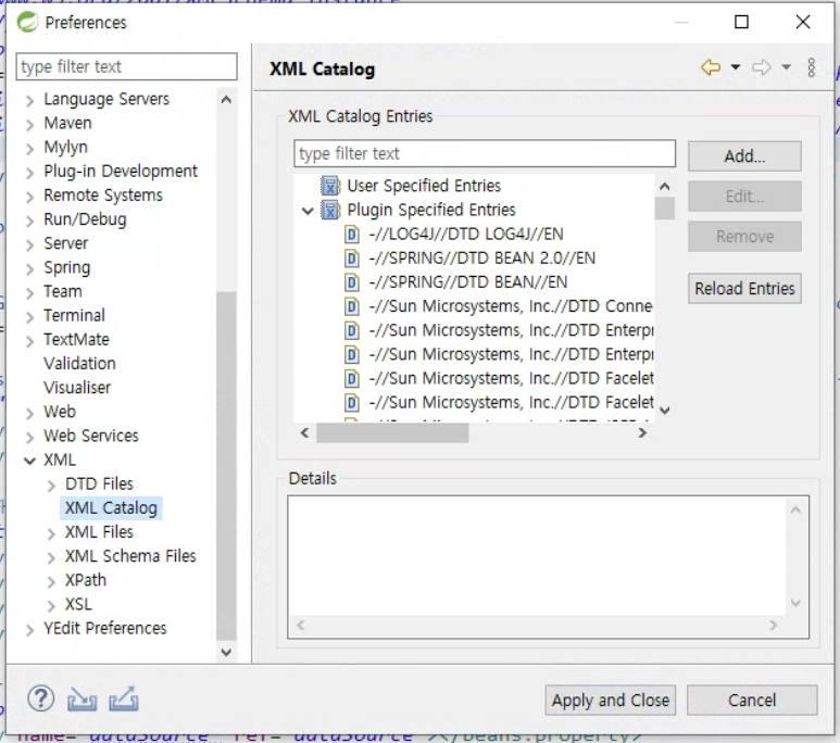 3. window - preferences - XML Catalog - User Specified Entries 추가